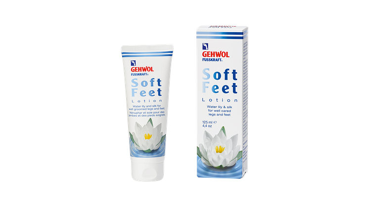 Immerse your legs into a revitalizing and soothing feel-god experience: The new care lotion with water lily and silk by Soft Feet, GEHWOL FUSSKRAFT's pampering care program, immediately refreshes the skin, leaving it with a silky smooth appearance.